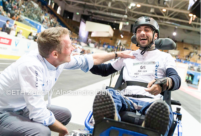 サイバスロンの創設者はスイス連邦工科大学チューリヒ(ETH Zurich)感覚運動システム研究室のロバート・リーナー教授。2013年の発表を皮切りに、2016年には6種目の第一回大会がチューリヒで開催され、25カ国から66人のパイロットが、参加しました。